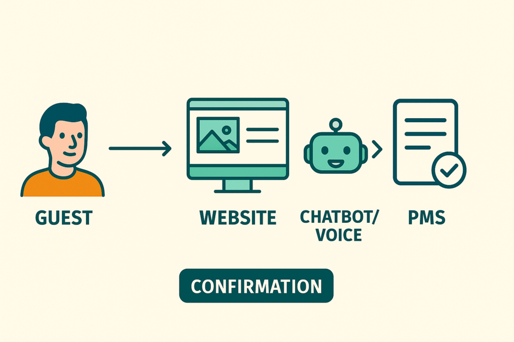 Where supported, our assistants can guide guests from availability to secure payment hand‑off within the chat and are expanding to voice booking, as reported by multiple industry outlets. We configure this to your PMS and rules.